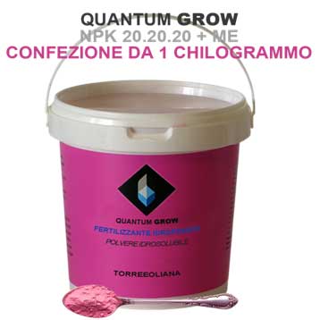 Quantum Grow fertilizzante NPK idrosolubile per la fertirrigazione di colture idroponiche o aeroponiche.